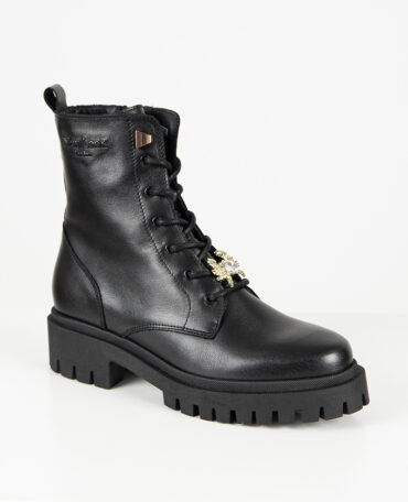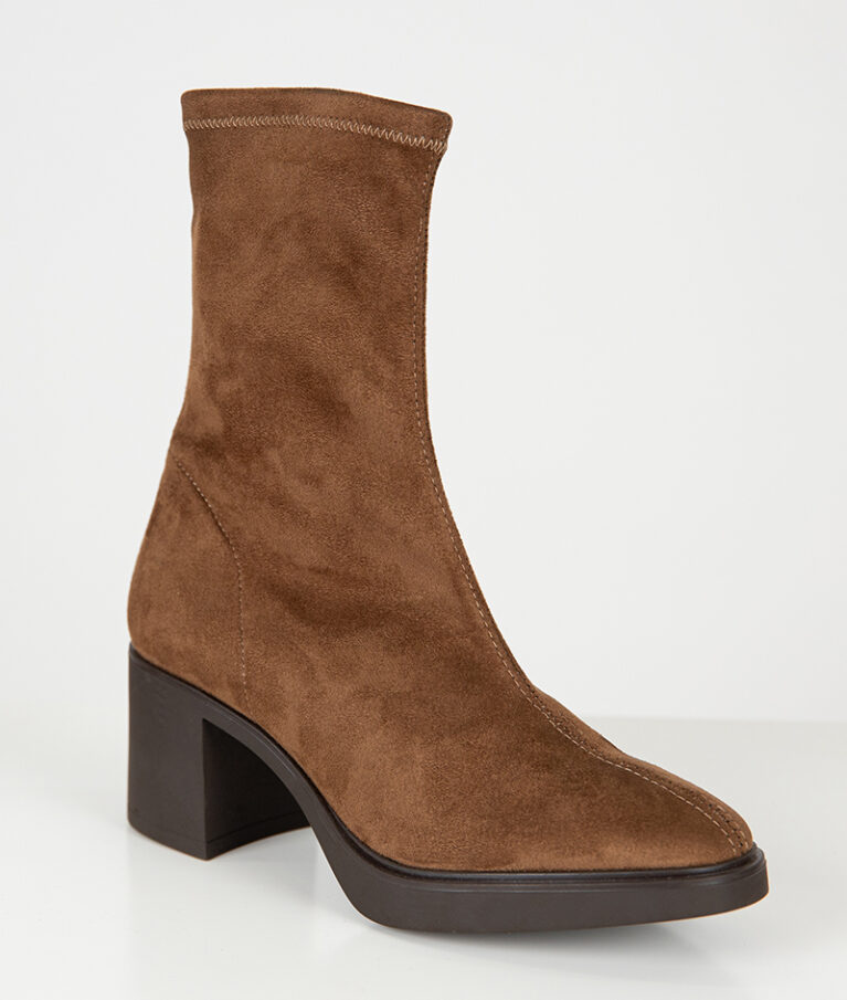 Botim salto alto, de senhora de licra com plataforma em sola de borracha.