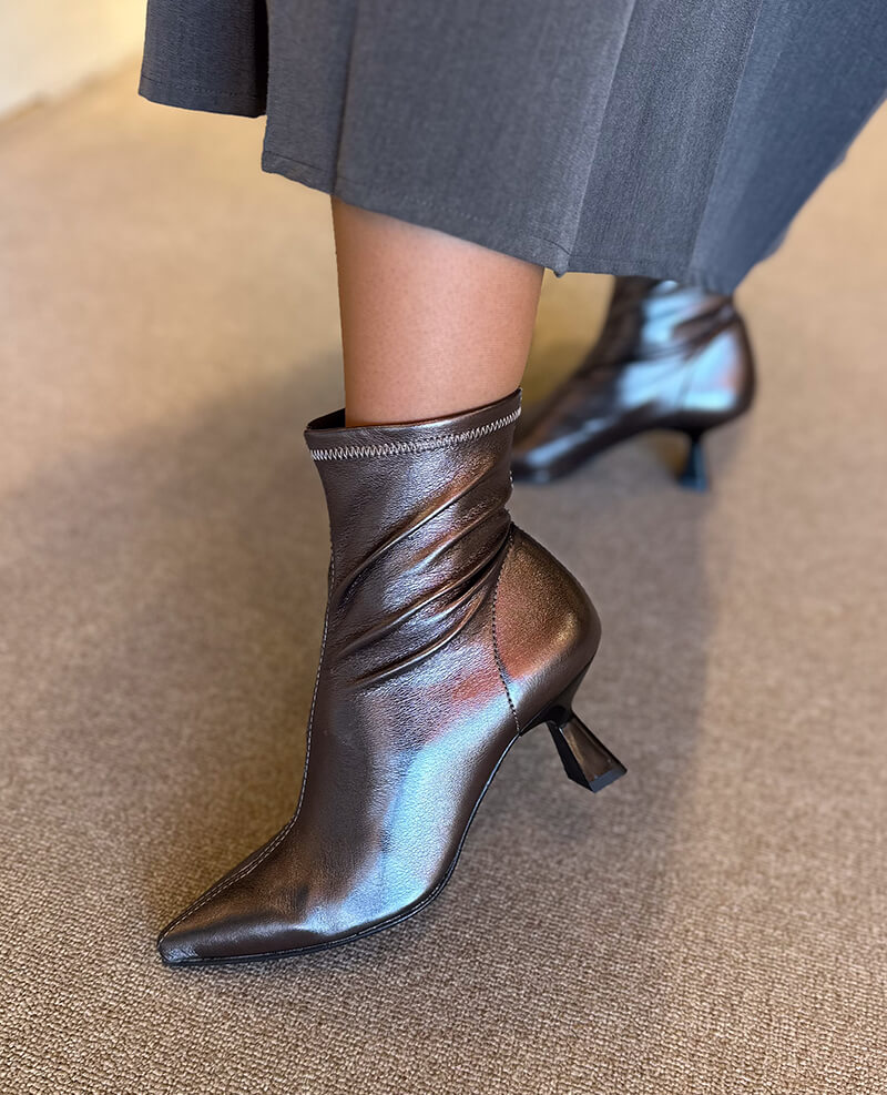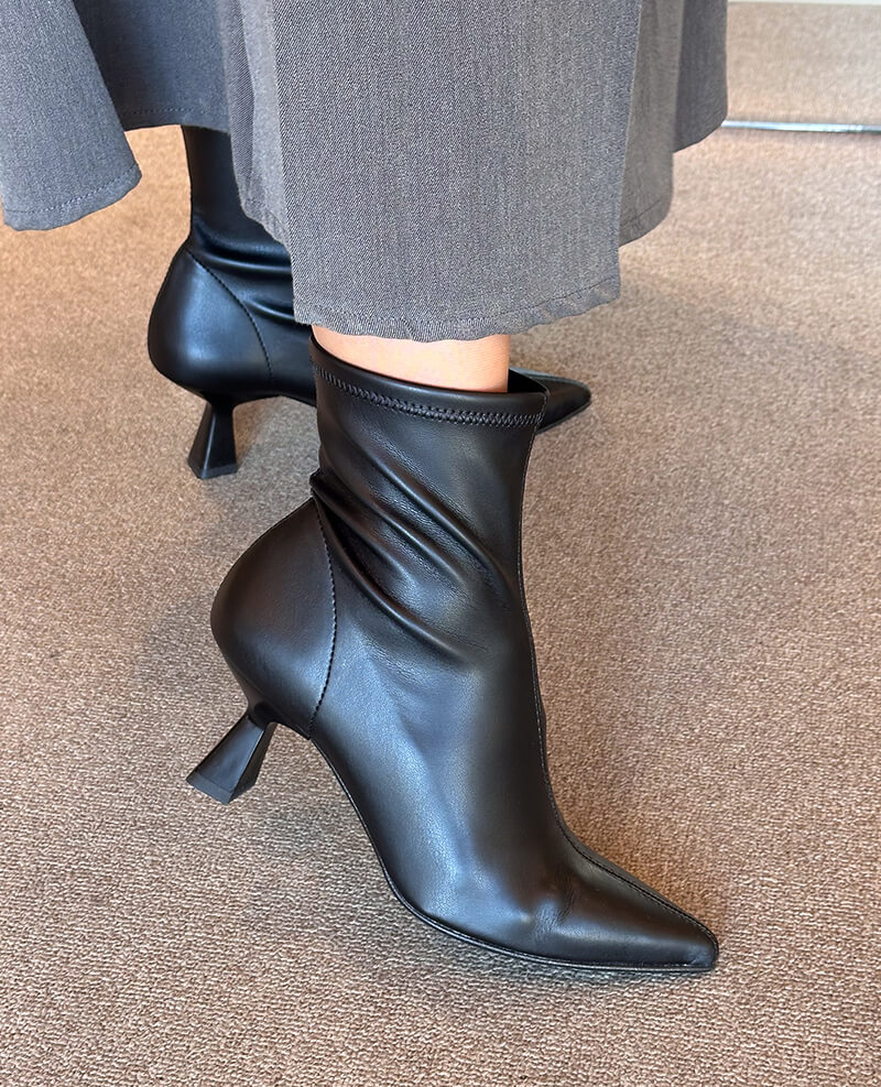 Botim salto alto, de senhora bicudo de licra.