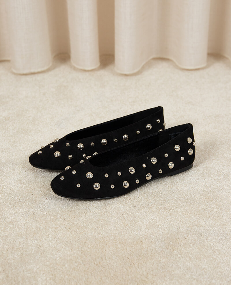 Sabrinas, de senhora, com detalhe em esferas metálicas.