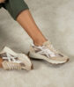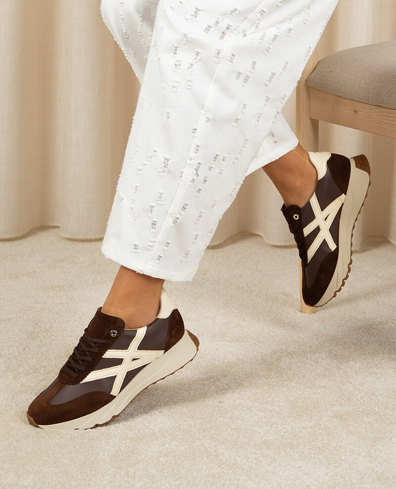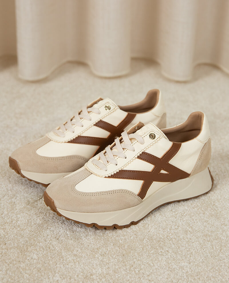 Sapatilhas, de senhora, com detalhe em riscas na lateral .