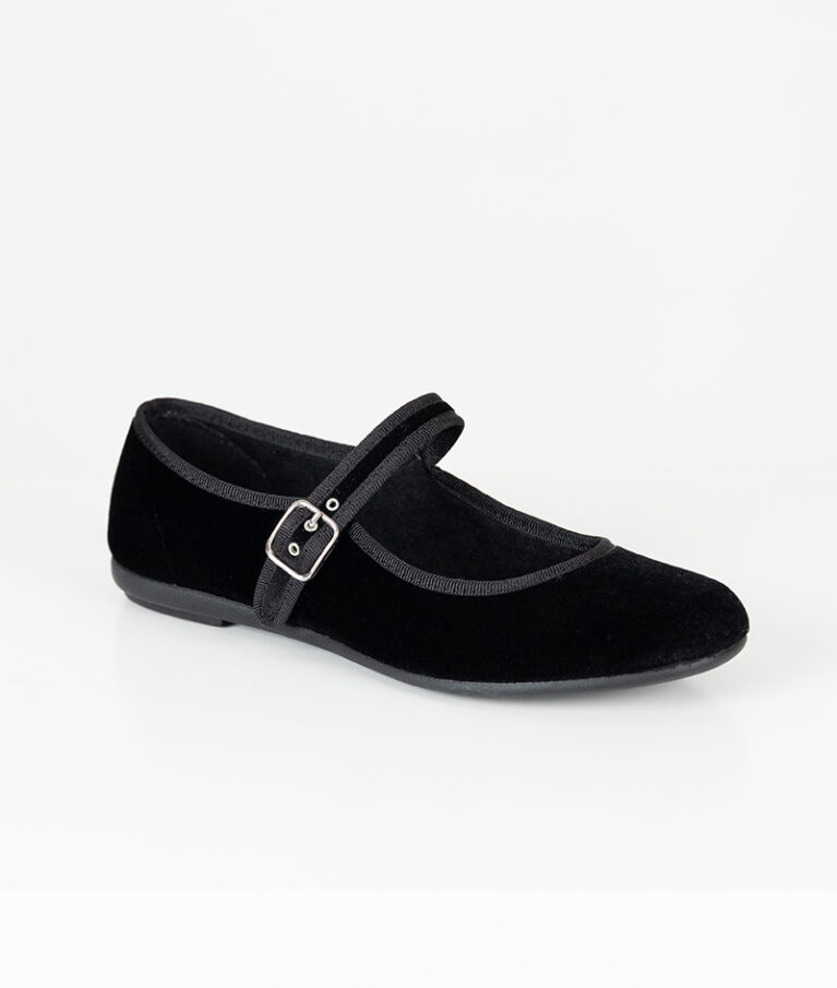 Sapatos rasos, de senhora, com detalhe em fivela na lateral do peito do pé .