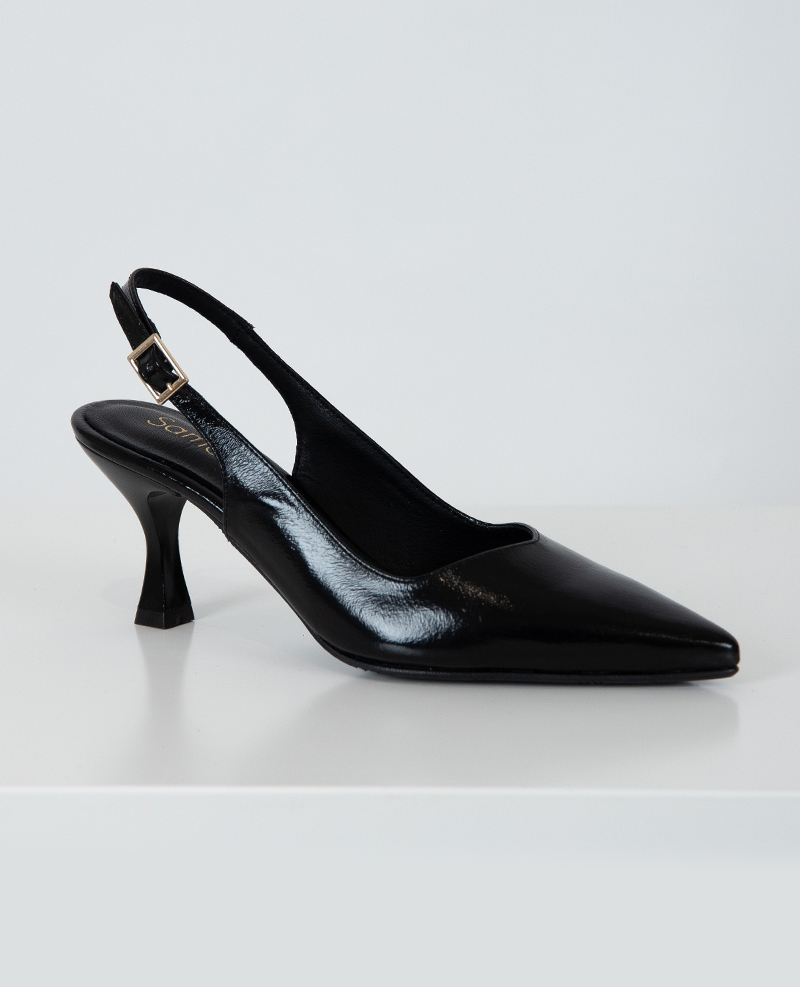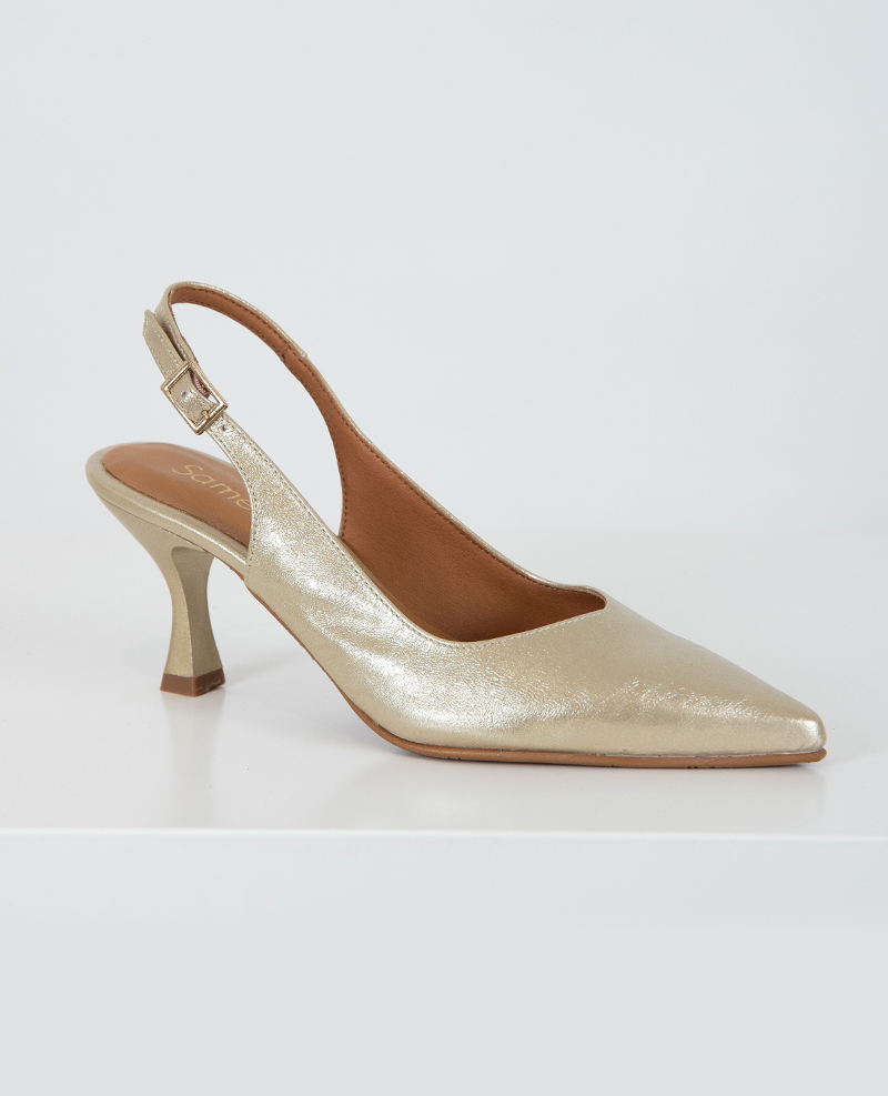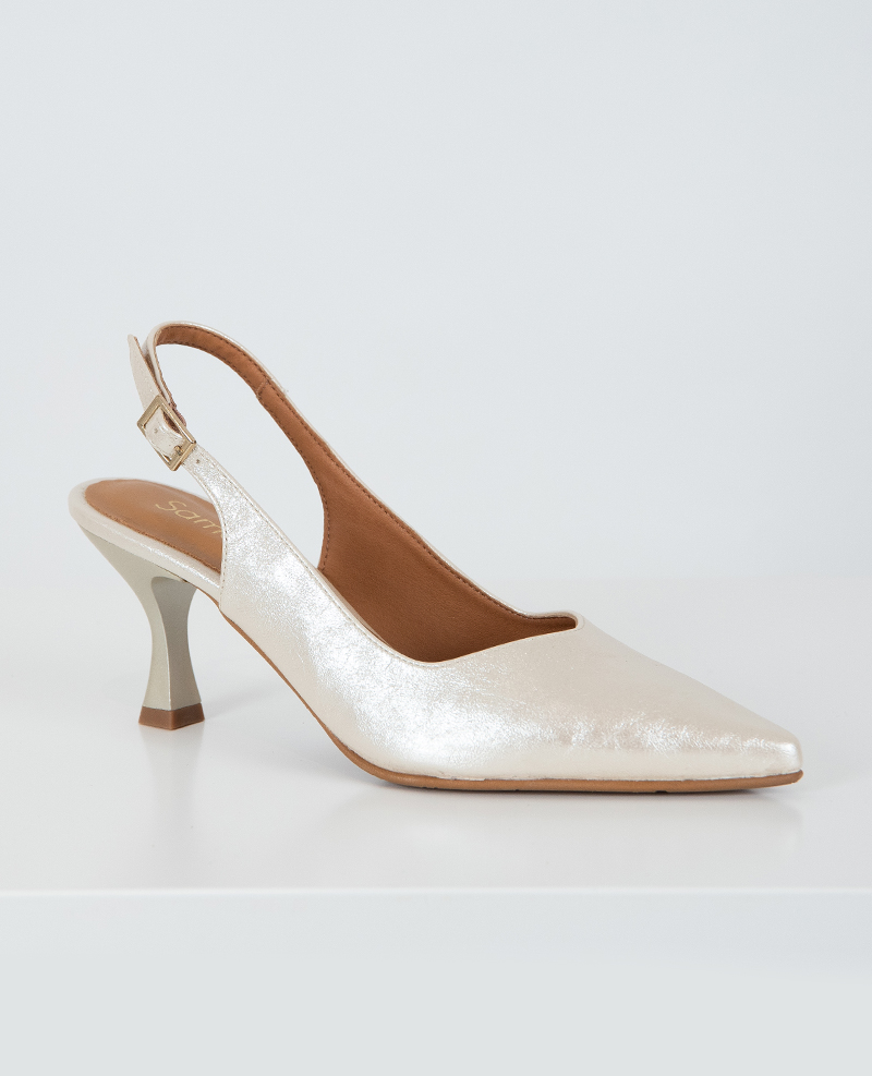 Sapato de senhora, semi-aberto modelo pontiagudo .