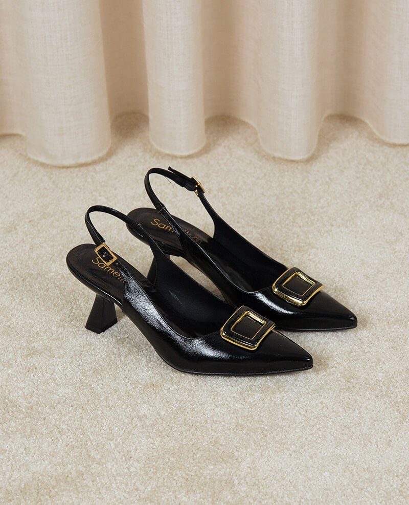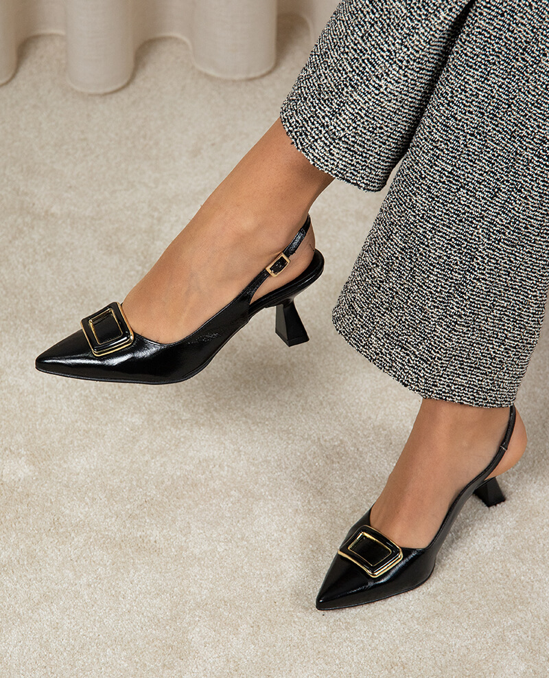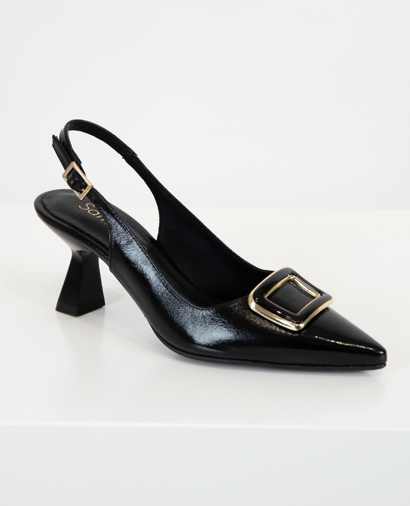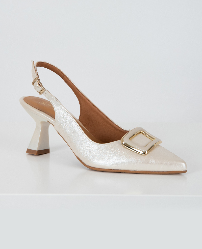 Sapato de senhora, semi-aberto com aplicação no peito do pé.